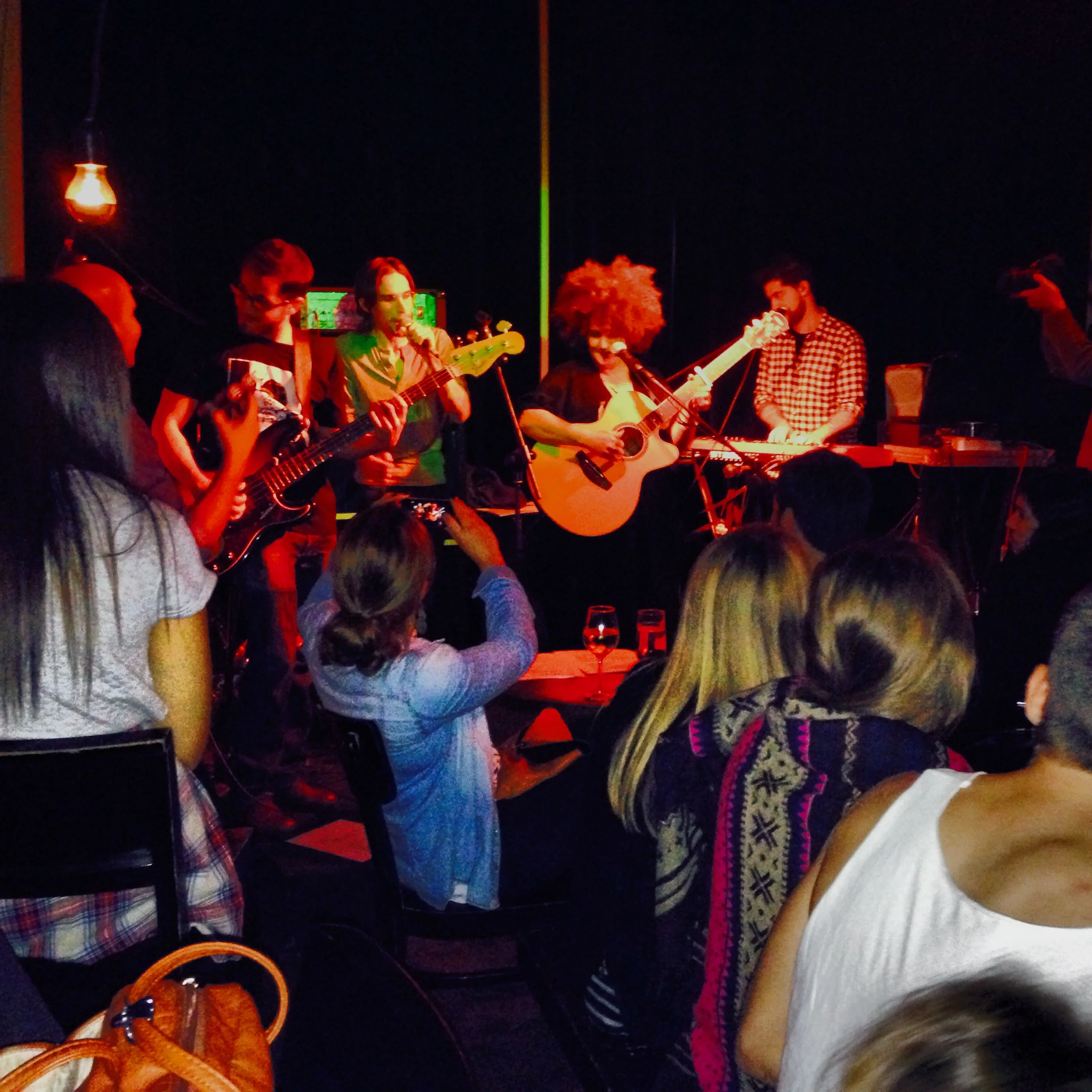 Listening to famous Israeli singer/songwriter Karolina sing live at hipster hangout Rothschild 12 in Tel Aviv.